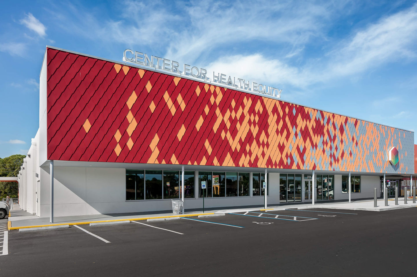 The Center for Health Equity and coworking office project includes extensive interior and exterior renovations to repurpose an existing 1960s shopping center into a collaborative meeting space for organizations across Pinellas County working toward health equity. The new center will serve as a flexible venue, forum, workshop, and office for various community members and non-profit organizations to come together, share resources, develop strategies and carry out initiatives. The Social Change Center will be used to fuel community-led, multi-sector interventions for improvements in health equity for southern Pinellas County.
